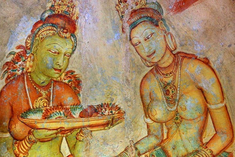 The fortress complex includes remnants of a ruined palace, surrounded by an extensive network of fortifications, vast gardens, ponds, canals, alleys and fountains. The main entrance is located in the northern side of the rock.It was designed in the form of a huge stone lion, whose feet have survived up to today but the upper parts of the body were destroyed.The frescoes are depicting nude females and are considered to be either the portraits of Kasyapa’s wives and concubines or priestess performing religious rituals. The most ancient inscriptions are dated from the 8th century. These inscriptions are proving that Sigiriya was a tourist destination more than a thousand years ago. Today, painting on the wall is strictly prohibited.